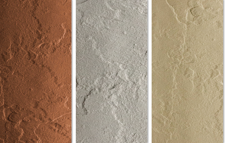 柔性石材系列是以无机材料作为主要基材,配以有高分子聚合物,再运用特制的温控造型系统经过成型、烘烤、辐照交联而成的一种具有柔性的建筑装饰片材。产品表面纹理参考板岩、洞石、火山岩、砂岩、花岗岩、大理石、等天然高端石材品种。凹凸的石材质感能够完美再现石材的天然美感。